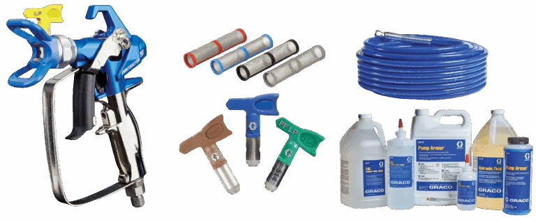 Wir bieten Ihnen ein großes Spektrum an verfügbarem Zubehör für Ihr Airlessgerät an. Die Spanne reicht hier von verschiedenen Düsen und Filtern über Spritzverlängerungen bis hin zu innengespeisten Rollern oder beheizten Schläuchen.